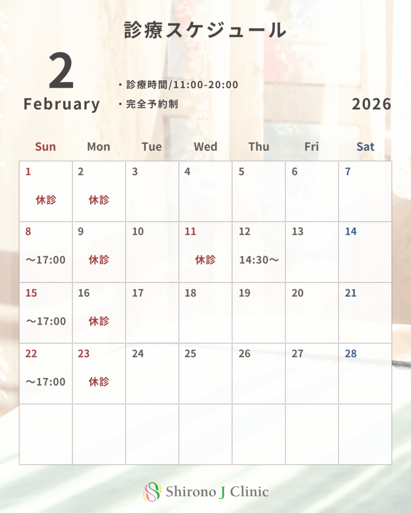 ※月曜日は休診していることもあるためお電話にてお問合せください。