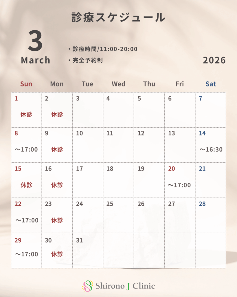 ※月曜日は休診していることもあるためお電話にてお問合せください。