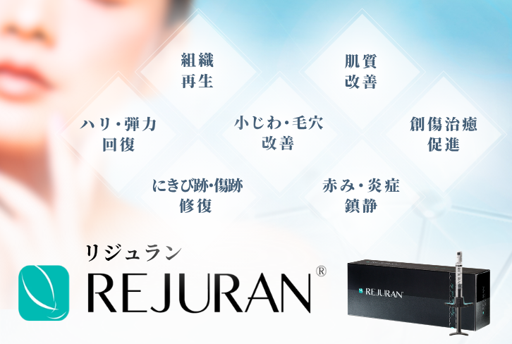 ここ数年の肌治療の傾向として「表皮や肌全体の改善に繋がる」と真皮の状態を改善する治療が注目されています。リジュランⓇは、その流れの先駆けとも言えるスキンブースター/肌再生剤で、当院でもその利用歴は長く、多くの方々に良い結果をご体験頂いています。